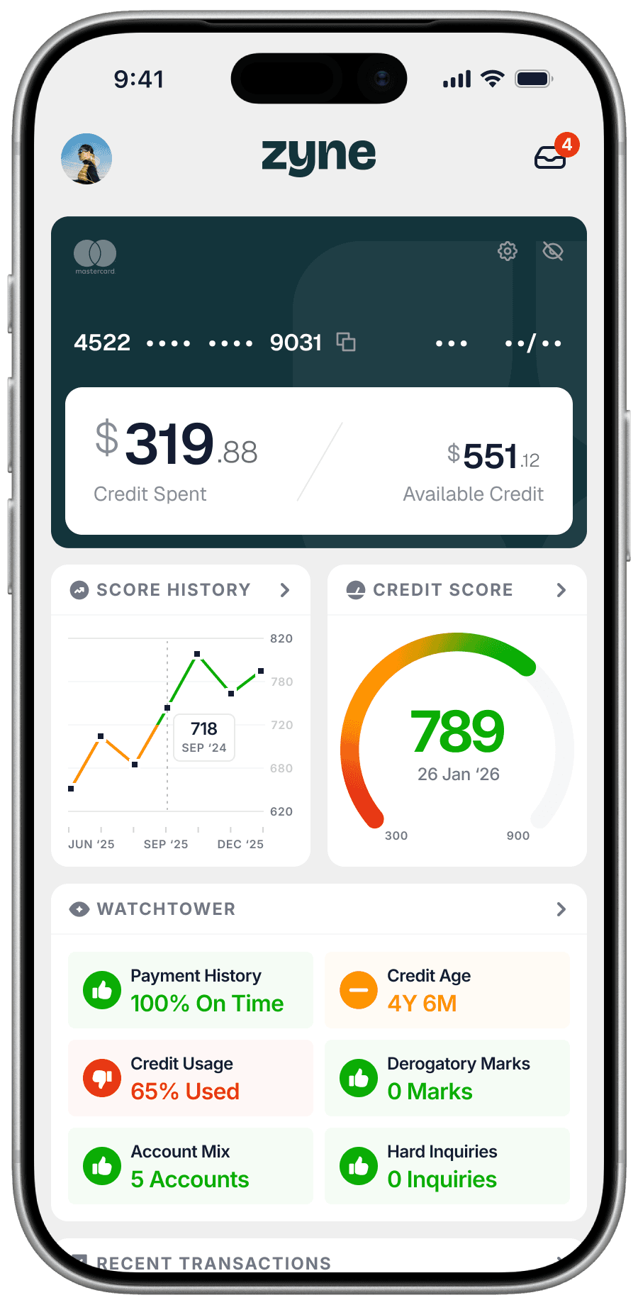 With Zyne, I no longer worry about not having enough to pay off my card bill. I just use it freely to increase my score.